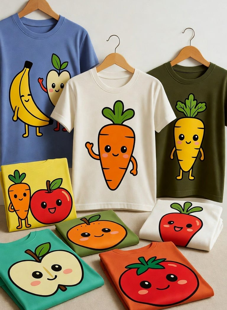 We're all about those cute fruit and vegetable graphic t shirts that feature whimsical characters—like a cheeky strawberry flexing its vitamins or a broccoli buddy boosting your iron game—perfect for anyone chasing that fresh, feel-good style.
